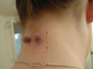 gestochen. Meist an dem Punkt, an dem die Person ein